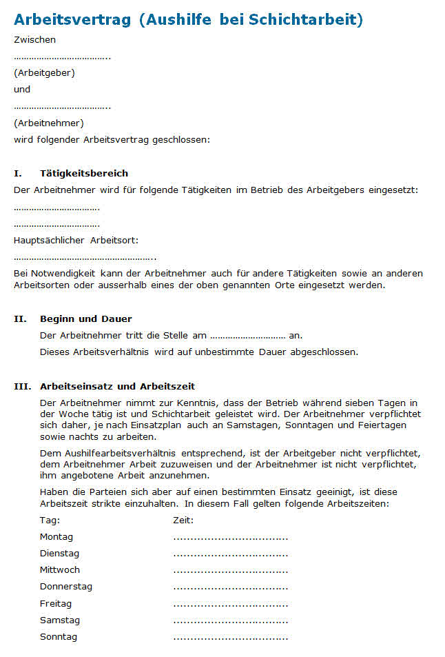 Muster Arbeitsvertrag Aushilfe